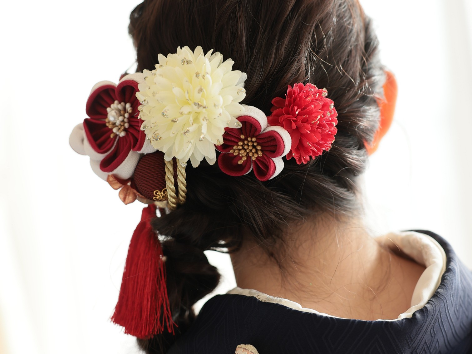 振袖の色や柄、雰囲気に合わせた髪型は、全体の印象をぐっと華やかに引き立てます。