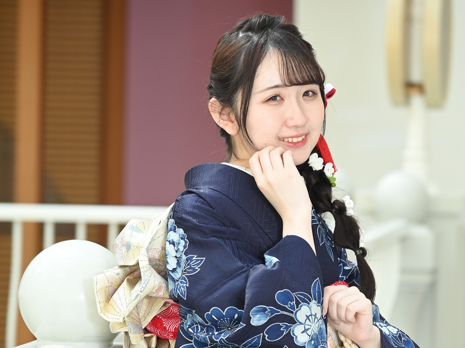 その思いを叶えるため、前撮りの際に、自分で選んだ振袖と、母の振袖の両方を着て撮影していただきました。